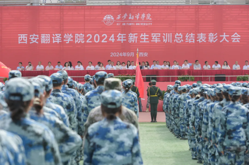 9月22日上午,位于翠华山下的西安翻译学院东区田径场上军歌嘹亮,迷彩成海,西安翻译学院2024级新生军训总结表彰大会如期举行。