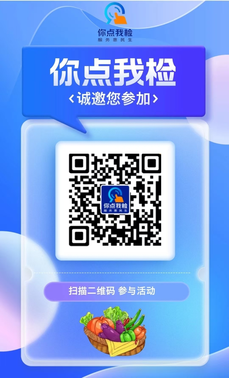 食品安全“你点我检”活动来啦!您关注什么,我检测什么! 让我们群策群力,充分发挥食品安全抽样检测重要作用,及时发现并化解食品安全风险隐患,守护大家的“米袋子”“菜篮子”“果盘子”。