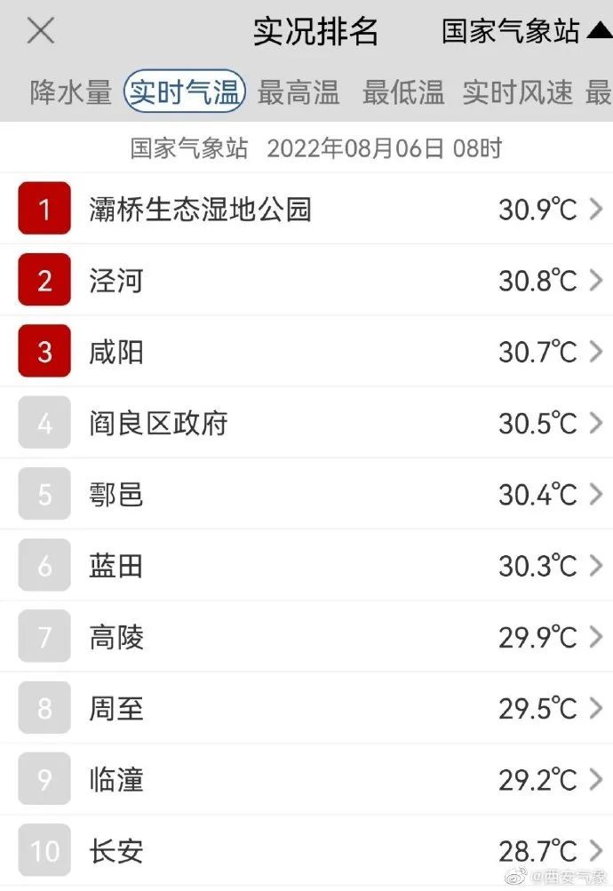 西安今日气温上升较快,早上8时的气温就已超过30℃,高温的周末,大家一定要注意防暑降温。