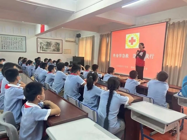 为普及应急救护知识和技能,宣传推动应急救护工作,9月14日,长安区红十字会在郭杜街道中心小学开展以“终身学急救 急救伴我行”为主题的应急救护培训宣传活动,全校1500余名师生参与。