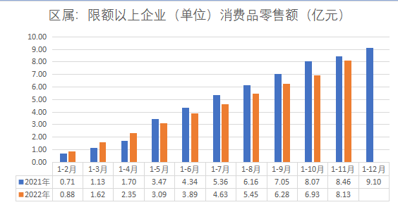 区属:限额以上企业(单位)消费品零售额(亿元)(图解)