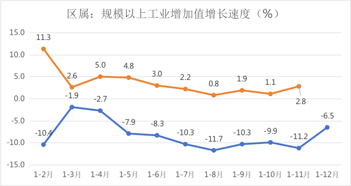 一、区属规模以上工业增加值同比增长2.8%,全口径规模以上工业增加值同比增长15.1%。