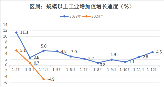 一、区属规模以上工业增加值同比下降4.9%,全口径规模以上工业增加值同比下降4.0 %。