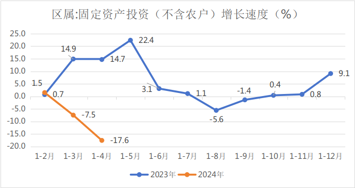 二、区属固定资产投资同比下降17.6%,全口径固定资产投资同比下降25.3 %。