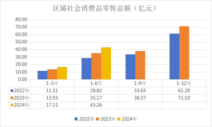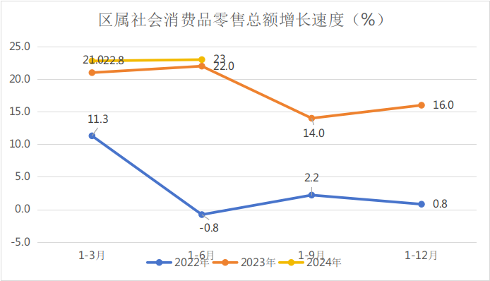 (一)区属规模以上工业增加值同比下降6.1%,区属固定资产投资同比下降7.5%,区属社会消费品零售总额完成43.26亿元,同比增长23.0%。