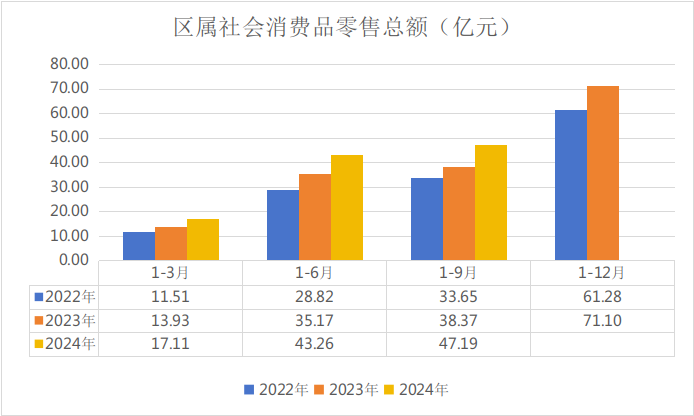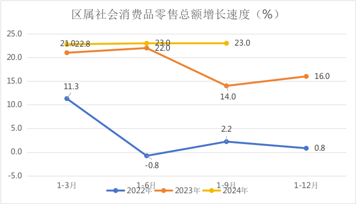 区属规模以上工业增加值同比下降6.6%,区属固定资产投资同比增长3.1%,区属社会消费品零售总额完成47.19亿元,同比增长23.0%。