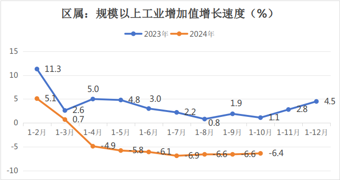 (一)区属规模以上工业增加值同比下降6.4%,全口径规模以上工业增加值同比下降5.9%。