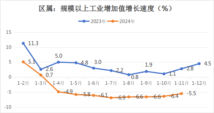 (一)区属规模以上工业增加值同比下降5.5%,全口径规模以上工业增加值同比下降5.8%。