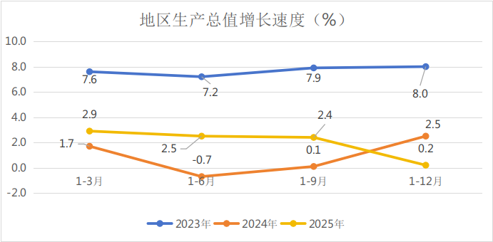 1-12月,我区地区生产总值完成1582.03亿元,按不变价格计算,较上年同比增长0.2% 。