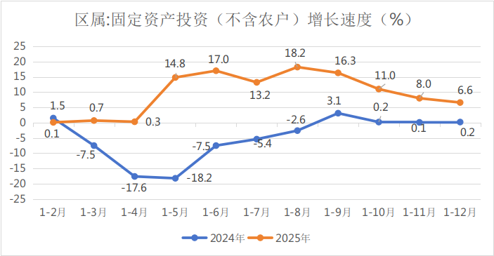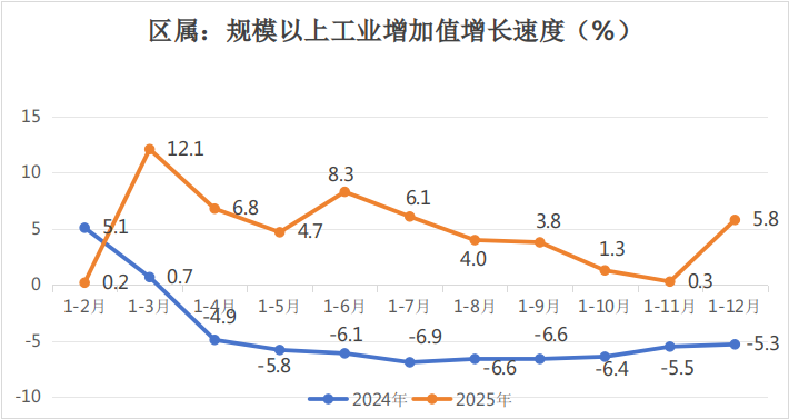 (一)区属规模以上工业增加值同比增长5.8%,区属固定资产投资同比增长6.6%,区属社会消费品零售总额完成132.06亿元,同比下降2.6%。