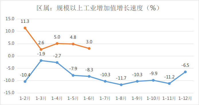 (一)区属规模以上工业增加值同比增长3.0%,区属固定资产投资同比增长3.1%,区属社会消费品零售总额完成35.17亿元,同比增长22.0%。