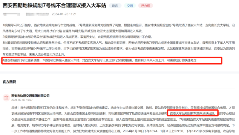 市民建议西安四期地铁规划7号线接入火车站
