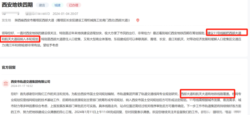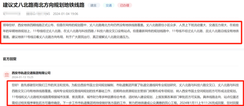 接下来一些关于地铁建设的热门话题,大家一起来看看官方回复!