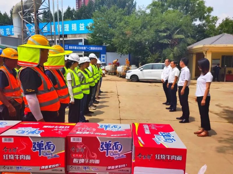 在西安市第九污水处理厂项目现场,公司领导向奋战在保民生、赶进度、保工期一线的施工人员送上诚挚的敬意,感谢大家不畏酷暑、辛勤付出,叮嘱大家做好防暑降温,做到安全规范,希望施工单位密切关注气温状况,适时调整作业时段和范围,确保高温作业安全有序,不误工期、不误民生。