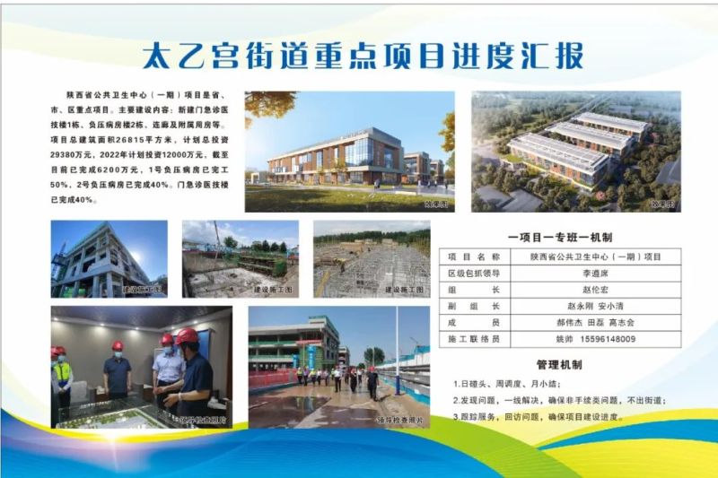 6月30日上午,位于太乙宫街道的省、市、区重点项目陕西省公共卫生中心(一期)顺利封顶。该项目总投资2.938亿元,2022年计划投资1.2亿元,目前已超额完成形象进度。