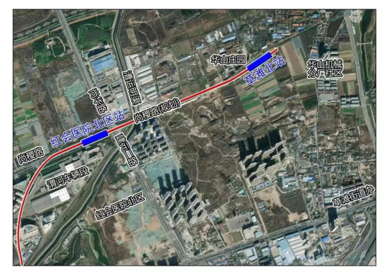 位于尚稷路与建元二路北段、尚华路路口西侧,沿尚稷路东西向布设;工程名为正阳大道,正在建设的西安市红会医院北院区距离该站约500米,拟命名为红会医院北区。