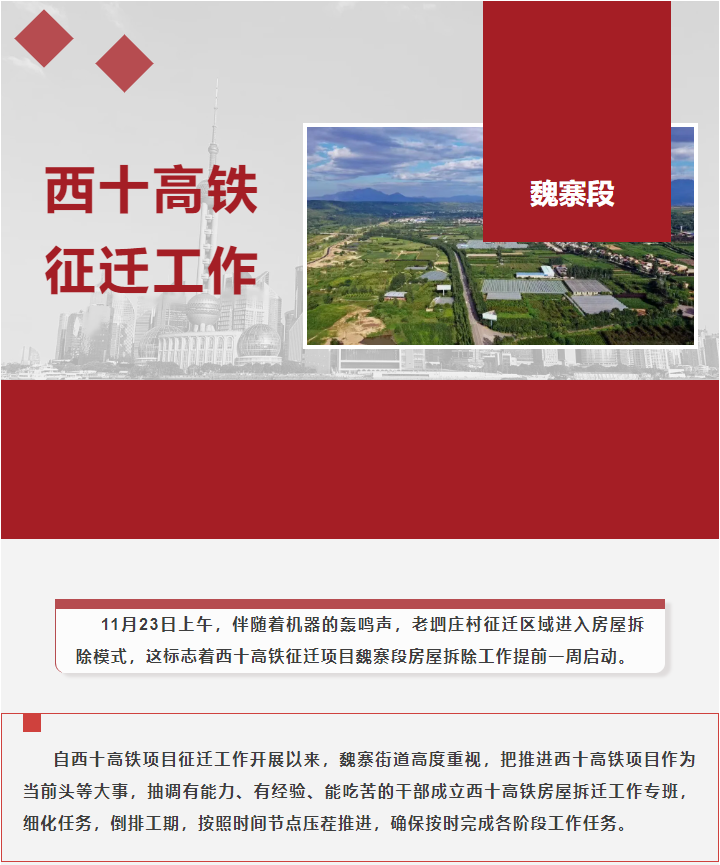 西十高铁征迁项目魏寨段提前启动房屋拆除工作