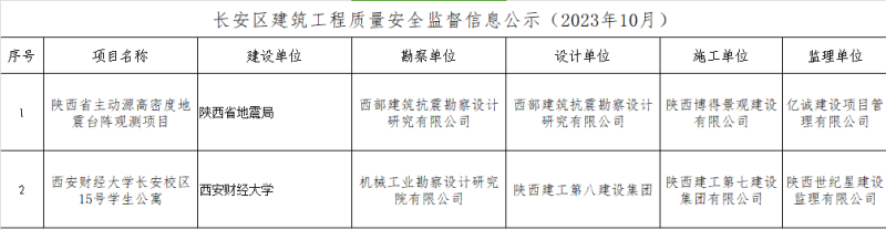 长安区建筑工程质量安全监督信息公示(2023年10月)