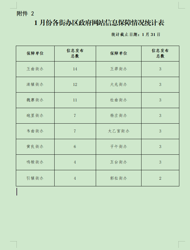 2.1月份各街办区政府网站信息保障情况统计表