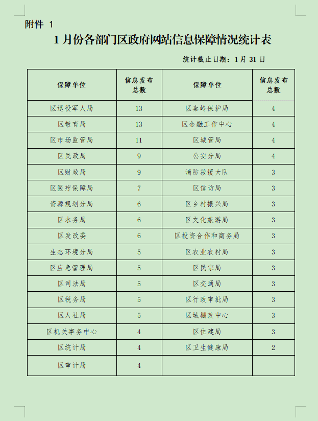 附件:1.1月份各部门区政府网站信息保障情况统计表