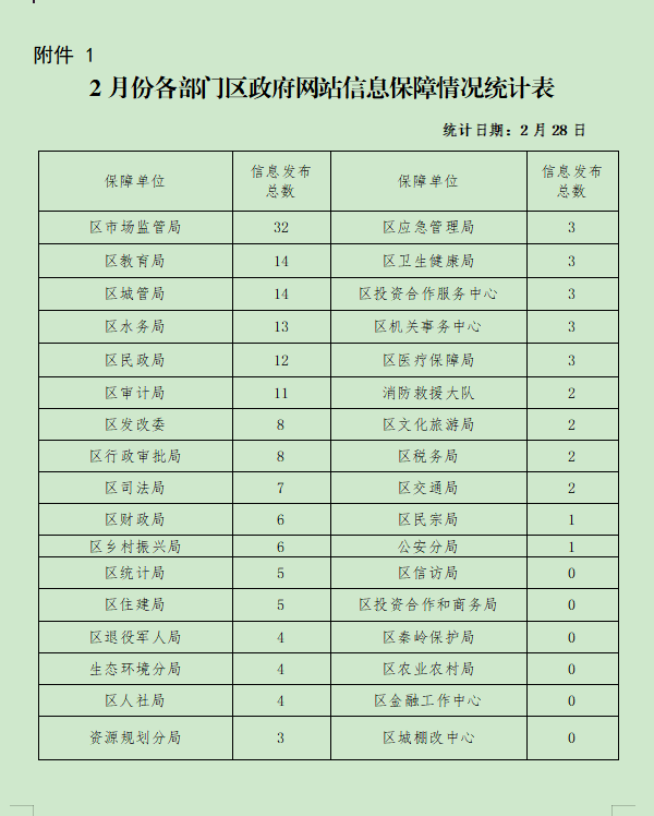 附件:1.2月份各部门区政府网站信息保障情况统计表