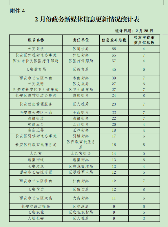 4.2月份政务新媒体信息更新情况统计表