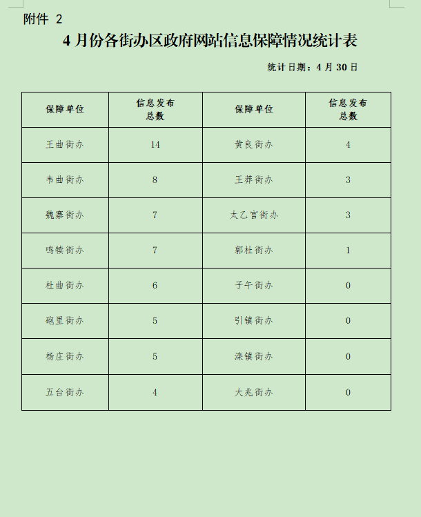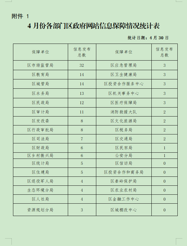 附件:1.4月份各部门区政府网站信息保障情况统计表